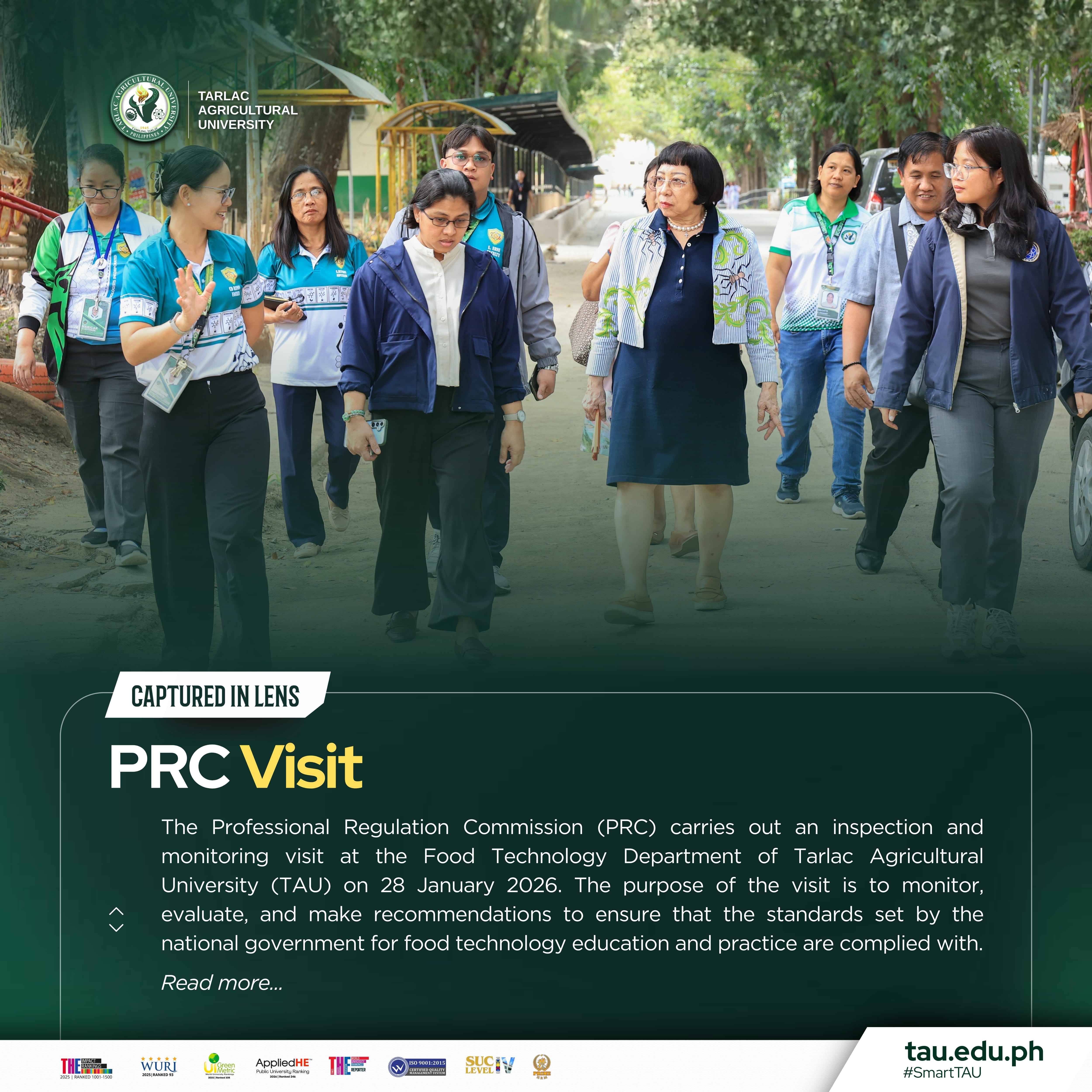 The Professional Regulation Commission (PRC) carries out an inspection and monitoring visit at the Food Technology Department of Tarlac Agricultural University (TAU) on 28 January 2026. The purpose of the visit is to monitor, evaluate, and make recommendations to ensure that the standards set by the national government for food technology education and practice are complied with.