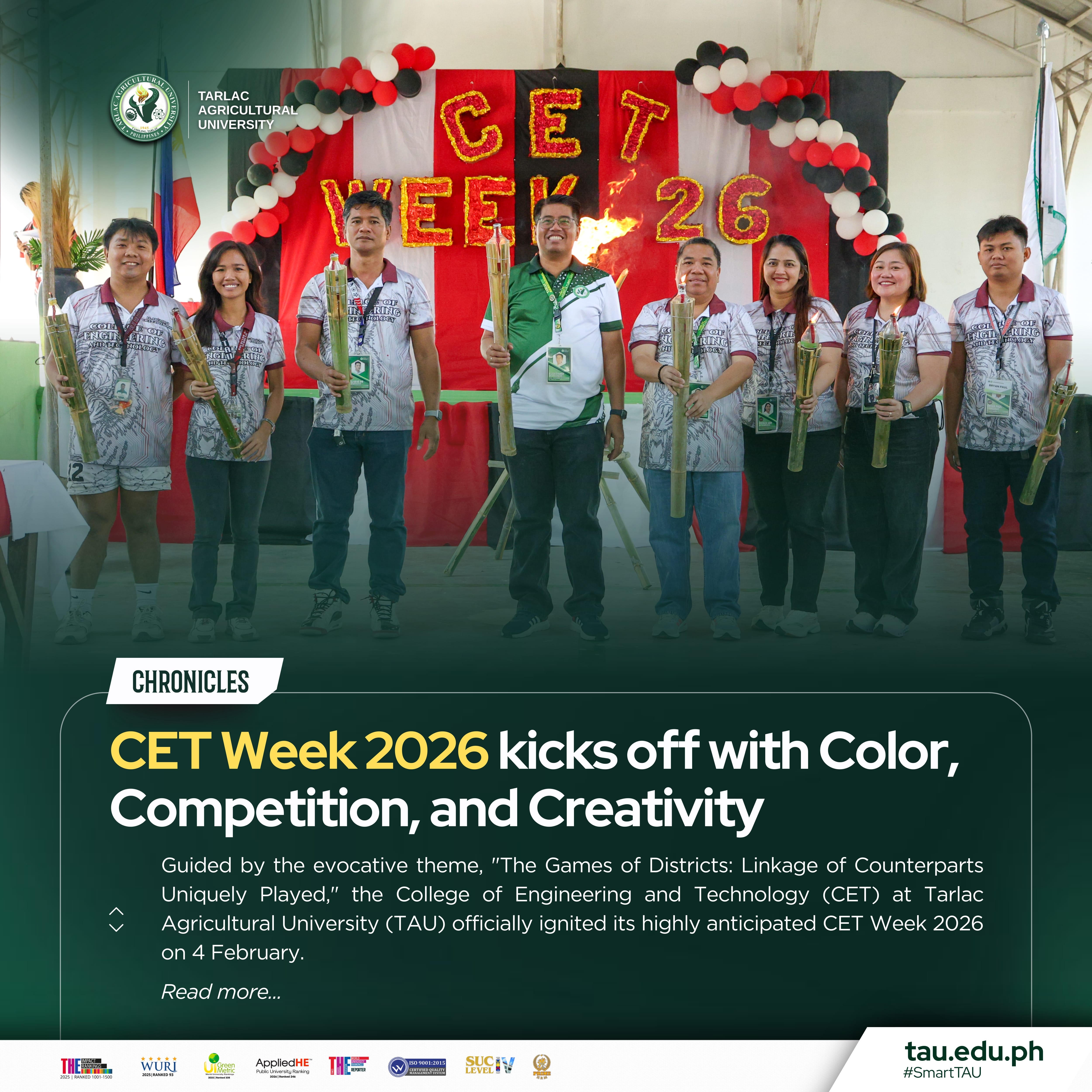 Guided by the evocative theme, "The Games of Districts: Linkage of Counterparts Uniquely Played," the College of Engineering and Technology (CET) at Tarlac Agricultural University (TAU) officially ignited its highly anticipated CET Week 2026 on 4 February.Β Β