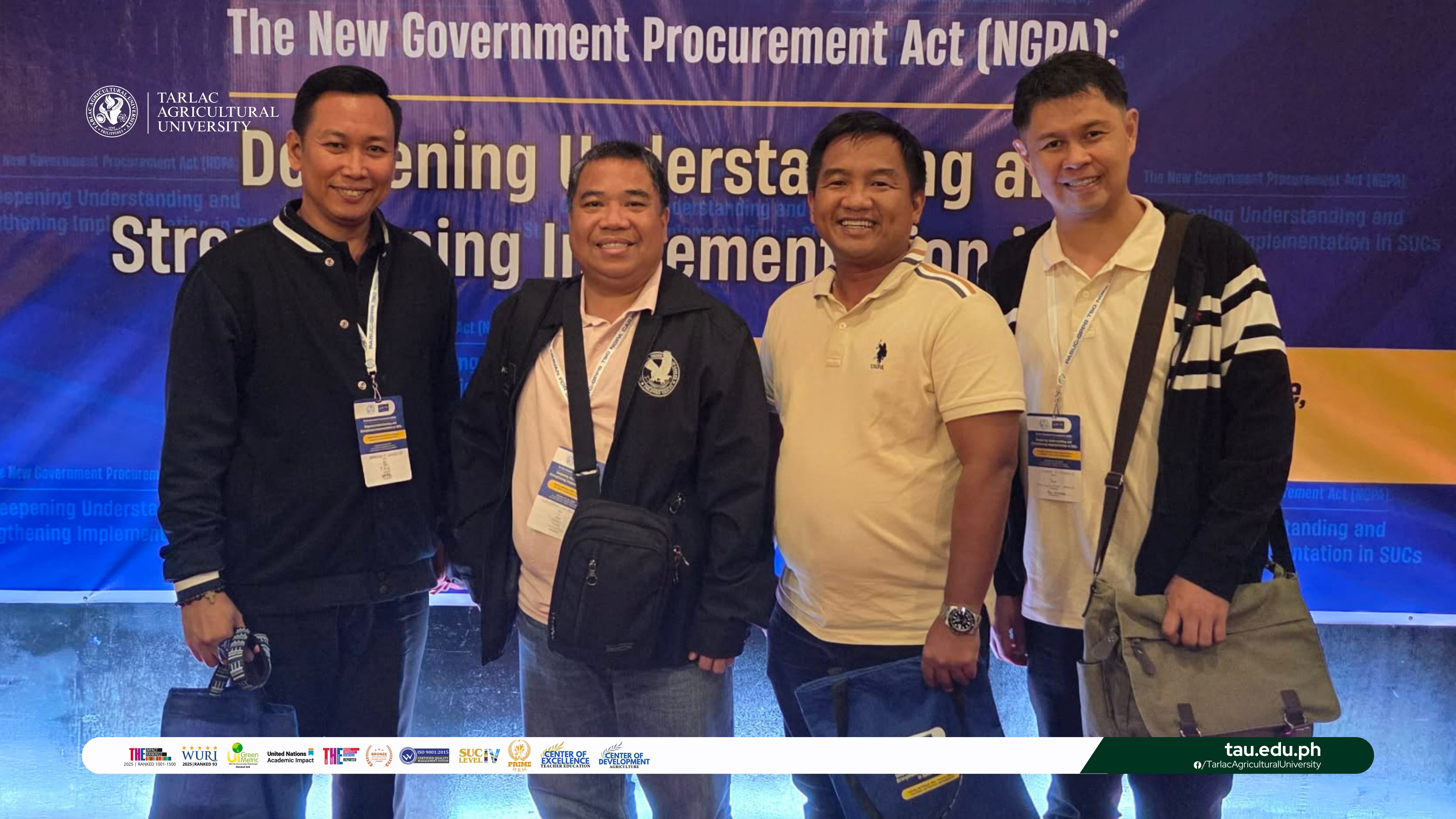 Deepening the knowledge and competencies in the government procurement process, the Tarlac Agricultural University (TAU) officials, led by Dr. Leonell P. Lijauco, Vice President for Planning and Quality Assurance (VPPQA); Atty. Steve Russel P. Regua, Atty IV from the Legal Unit; Dr. Arnold R. Lorenzo, the Vice President for Finance and Administration (VPFA); and Mr. Eduardo D. Cabrera II, Chief of the Procurement Management Unit, attend the seminar on The New Government Procurement Act (NGPA) Deepening Understanding and Strengthening Implementation in State University and Colleges (SUCs) at the Manila Prince Hotel, Ermita, Manila, from 27-29 October.