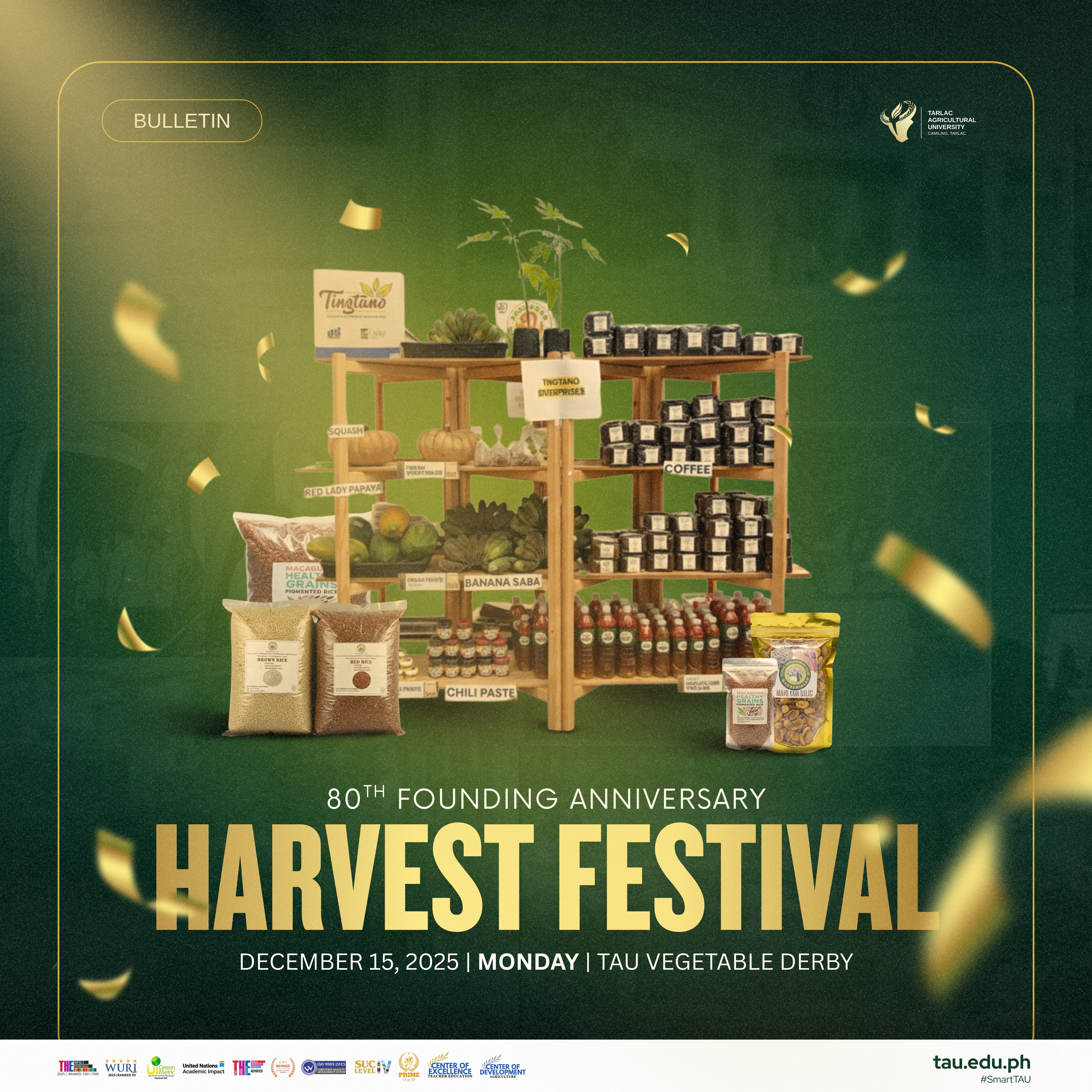 Join us for the grand culmination of the TAU Vegetable Derby at our Harvest Festival starting 15 December, a featured event of our 80th Founding Anniversary celebrations!ย
