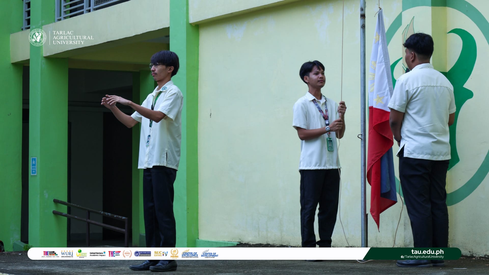 The Tarlac Agricultural University (TAU) community comes together in solidarity for the simultaneous flag-raising ceremony held in various areas of the University, 13 October.