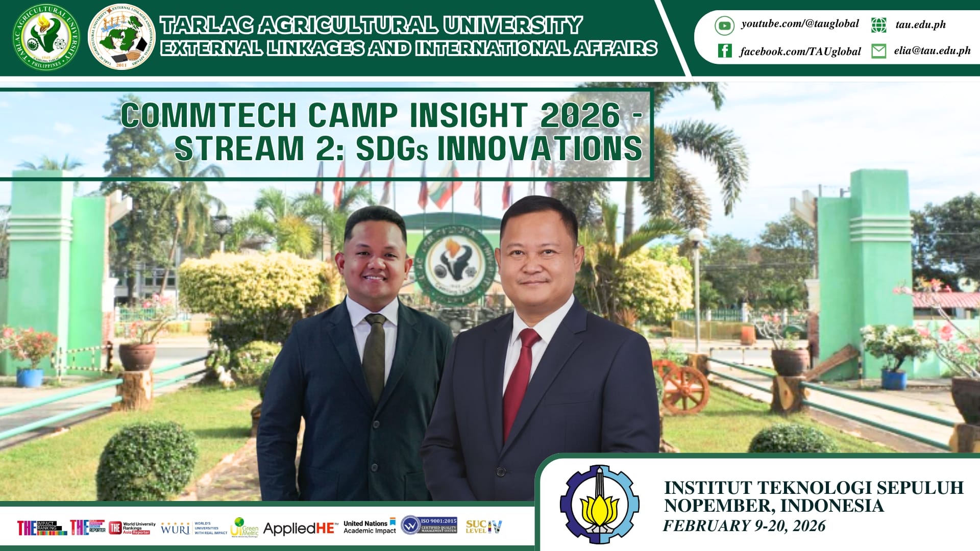 A representative from the College of Arts and Sciences (CAS), Mr. Jehoshapat L. Rombaoa, is set to participate in Stream 2: SDGβs Innovations in the Community and Technological Camp (CommTECH) Insight 2026 hosted by the Institut Teknologi Sepuluh Nopember (ITS) in Surabaya, Indonesia alongside with the Dean of the aforementioned college, Dr. Sherwin S. Alar, to also represent Tarlac Agricultural University (TAU) in official meetings to explore potential future collaborations with ITS officials on 9 to 20 February 2026.