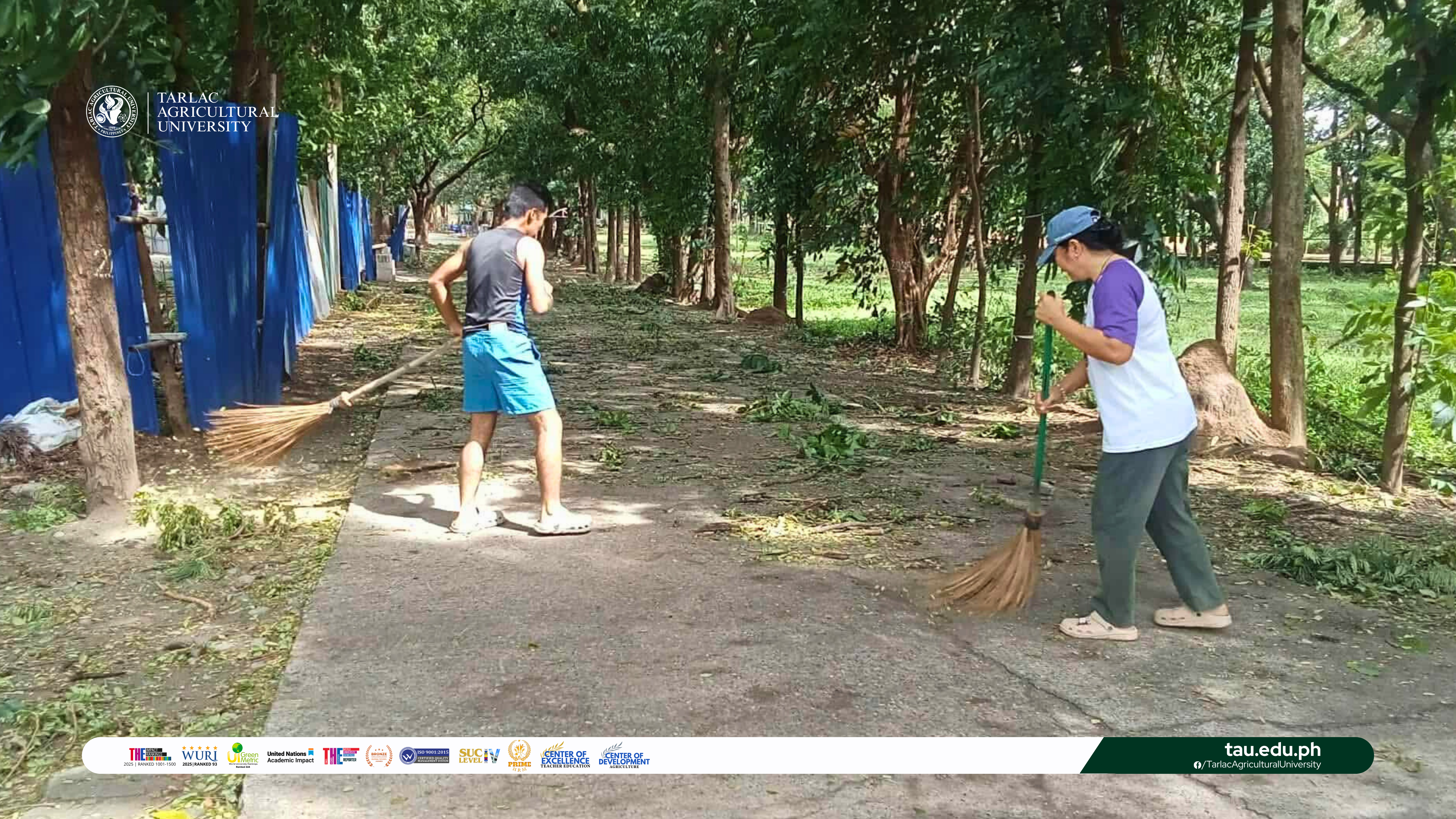 The Tarlac Agricultural University (TAU) community led by its President Dr. Silverio Ramon DC. Salunson comes together in a remarkable display of unity through a bayanihan effort following the recent typhoon βUwan.β Led by the General Services Office (GSO) and the Ecological Solid Waste Management (ESWM) team, employees take part in clearing debris and restoring order to the university grounds.