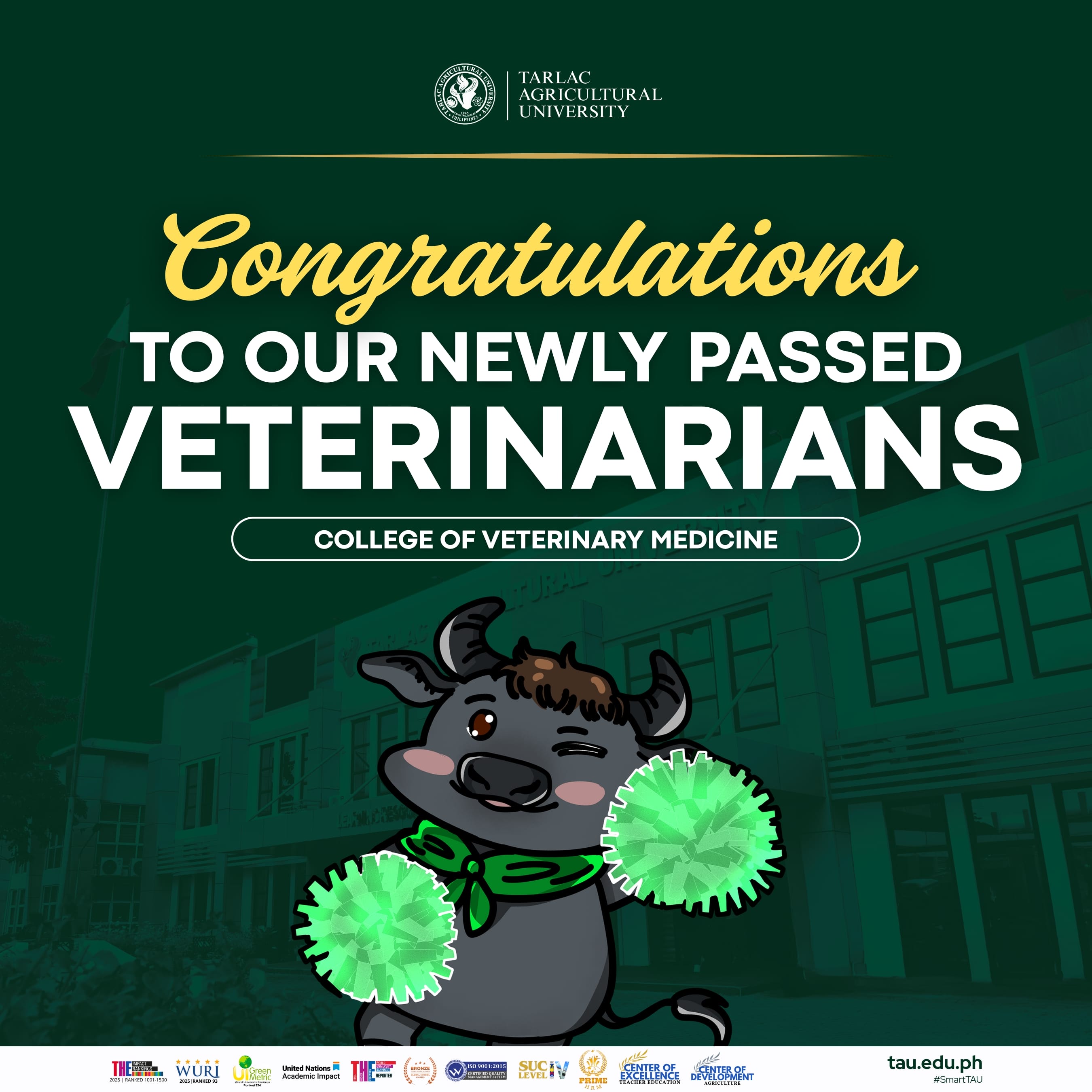 Fifty-six graduates of the Tarlac Agricultural University β College of Veterinary Medicine (TAU-CVM) have officially passed the Veterinary Licensure Examination 2025, marking another remarkable milestone for the White Eagles community. Their success stands as a testament to years of rigorous academic formation, laboratory practice, field exposure, and unyielding determination in pursuing a profession that safeguards animal health, public safety, and agricultural development.