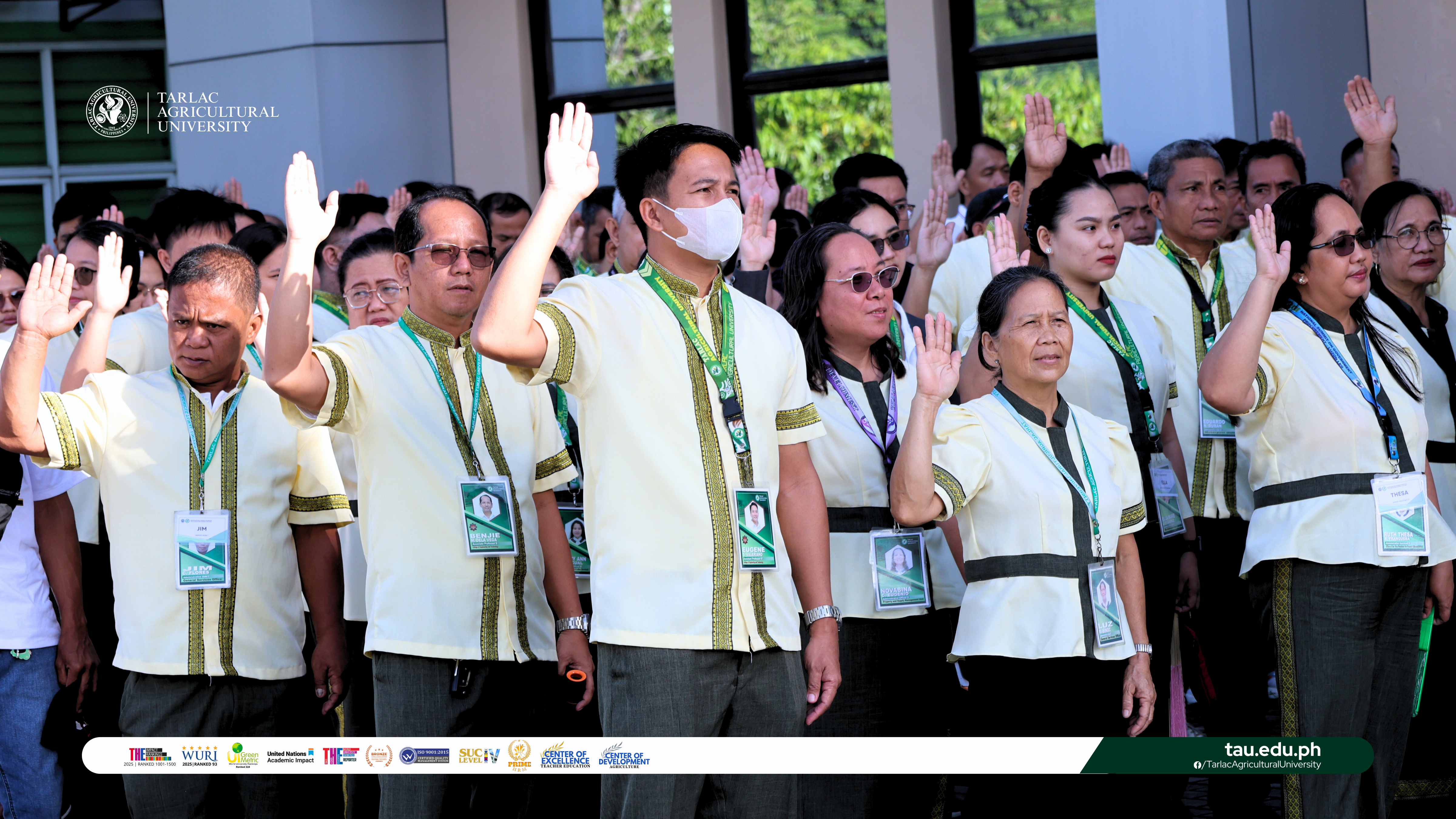 TAU community, including officials, faculty members, staff, and students, sing the national anthem and recite pledges at the College of Arts and Sciences (CAS) grounds, College of Agriculture and Forestry (CAF), Laboratory School (LS) front yard, and in front of the Library Building, synchronously.